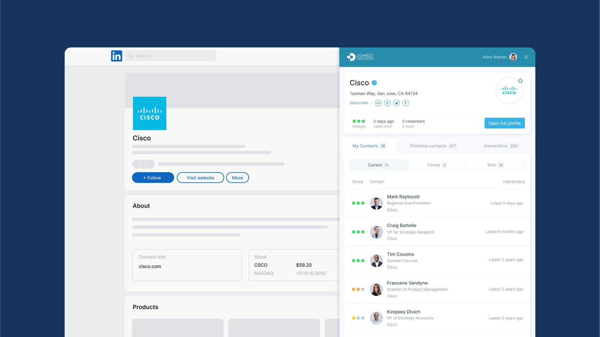 Connect The Dots is applicable to every company on the planet. I've been using it every day for six months. It’s allowed me to connect three different emails and see 15 years of relationship history in one unified view of all my contacts and companies. I can also see across all my employees to understand where we have strong relationships that might be helpful.